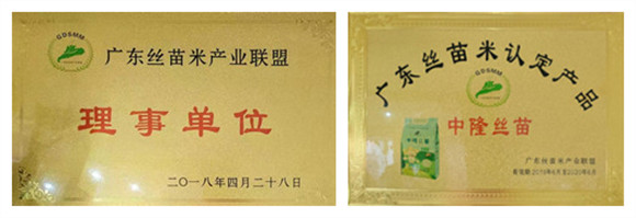 获得广东丝苗米产业联盟理事单位和认定产品“中隆丝苗”